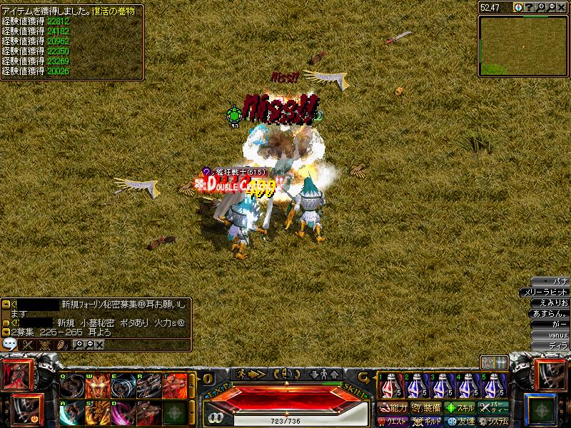 昨晩寝る前に、メンテ後経験修正が入ったと聞き、早速中部で狩りをしてみると
