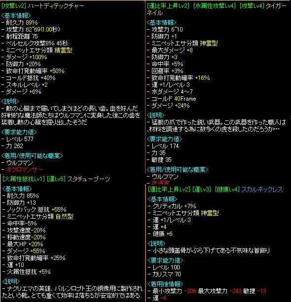 致命率修正検証に利用した装備4つです。最大で合計致命率98%。
